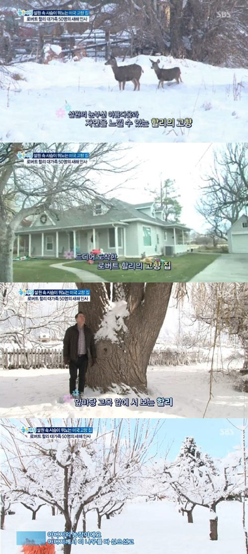 특히 아름다운 설원을 배경으로 사슴이 뛰어다니는 앞마당과 많은 나무가 심어져 있는 로버트 할리 아버지 소유의 농장이 공개돼 시선을 모았다. 이어 집 내부를 공개하던 로버트 할리는 거실에 놓인 피아노를 직접 연주하고, 어머니와 함께 과거 사진을 보며 즐거운 시간을 보내기도 했다.