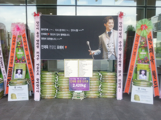 총 4.8톤이 넘는 사랑의 쌀, 나누미(味)는 모두 뮤지컬 '잭 더 리퍼'와 '황태자 루돌프'의 안재욱을 응원하기 위해 모아진 것으로 국내 팬들은 물론 일본, 중국, 대만, 미국 등 세계 각국에 퍼져 있는 해외 팬들의 적극적인 동참에 의해 모금됐다.