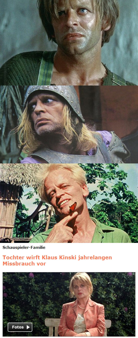 130편이 넘는 영화에 출연하며 관객들에게 깊은 인상을 남기고 간 당대 최고의 배우 클라우스 킨스키는 이번 딸의 충격 고백으로 명성에 금이 생기고 있다. <스포츠조선닷컴>