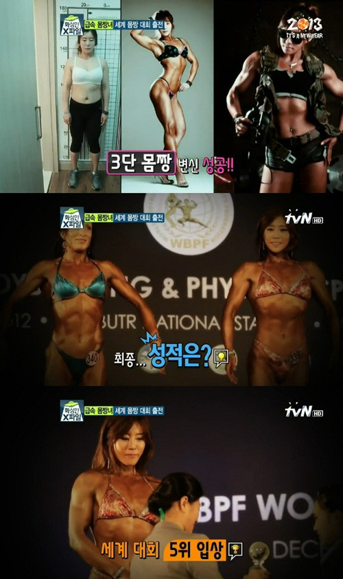 지난 11월 방송에서 대회를 위해 비행기를 탔던 그녀는 결국 2012 세계 보디 피트니스 대회에 출전해 세계 대회 5위에 올랐다.<스포츠조선닷컴>
