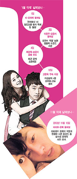 예전 연예계에는 유난히 11월에 안좋은 일이 몰렸고 '11월 괴담'이라는 말까지 등장했다. 하지만 지난 2012년 11월은 꽤 부드럽게 지나갔다. 눈에 띄는 사건은 아이유와 은혁의 사진 유출 파문 뿐이었다. 오히려 하하와 별의 결혼식이나 선예나 소유진 홍록기의 결혼 소식이 알려지며 핑크빛 무드에 휩싸이기도 했다. 때문에 '11월 괴담'은 끝났다는 분위기가 커졌다.