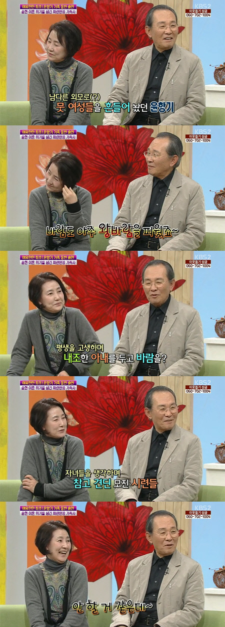 하지만 윤항기는 "나는 아내와 다시 결혼하겠다"고 말해 웃음을 자아냈다.
