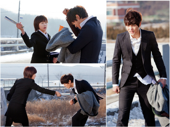 이 사진은 국정원 시험에 합격한 두 사람이 첫 출근길에 티격태격 말싸움을 벌이는 장면으로, 영하 10도 가까이 내려간 날씨 속에 최강희에게 연이어 구타를 당해야 했던 주원은 계속되는 NG에 "이제 그만 맞고 싶다"며 애교 넘치는 부탁을 하기도 했다고.