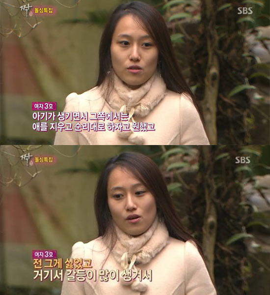 나이와 직업, 등 자신의 신상명세를 공개하던 여자 3호는 "이혼한 적은 없고 파혼을 했다. 현재 5살 된 딸이 있다"며 "파혼하게 된 이유는 아기가 생기면서 그쪽(시댁)에서는 아기를 지우고 순리대로 하는 걸 원했고, 저는 그게 싫었다. 거기서 갈등이 많이 생겼다"고 파혼이유에 대해 덤덤하게 설명했다.