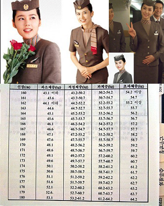 항공사 스튜어디스의 몸무게표가 공개돼 눈길을 끌고 있다.