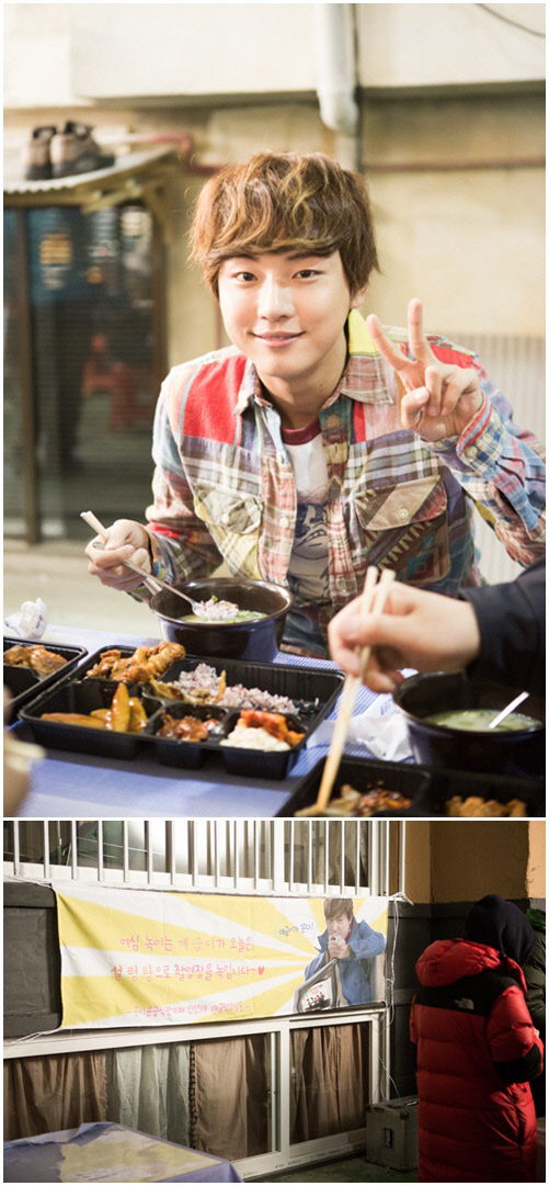 이들은 지난 13일 촬영이 한창인 경기도 파주 '이웃집 꽃미남' 촬영 세트장을 찾아 100인분의 설렁탕을 준비했다. 이번 밥차 조공은 추운 날씨에도 열정을 다하는 스태프와 동료 배우들을 위해 윤시윤 팬들의 정성과 팬심이 모이면서 이뤄졌다.