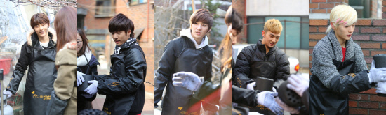 뉴이스트는 지난 17일 영등포 신길동에서 진행된 '사랑의 연탄 나눔 운동' 행사에서 팬들과 함께 3000장의 연탄을 지원하는 활동에 참여했다.