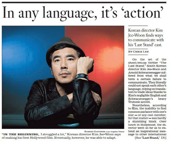 미국의 LA 타임즈가 김지운 감독의 할리우드 진출작 '라스트 스탠드'를 비중있게 다뤄 눈길을 끌었다.