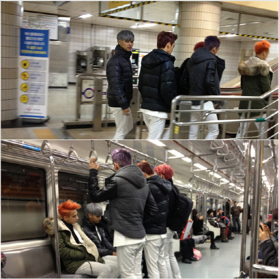 그룹 빅스가 '늑대소년' 차림으로 지하철에 출몰한 사진이 화제다.