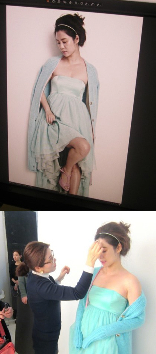 김현주는 macaron blue에 어울리는 깨끗하면서도 청순한 느낌의 콘셉트로 촬영이 진행됐다.