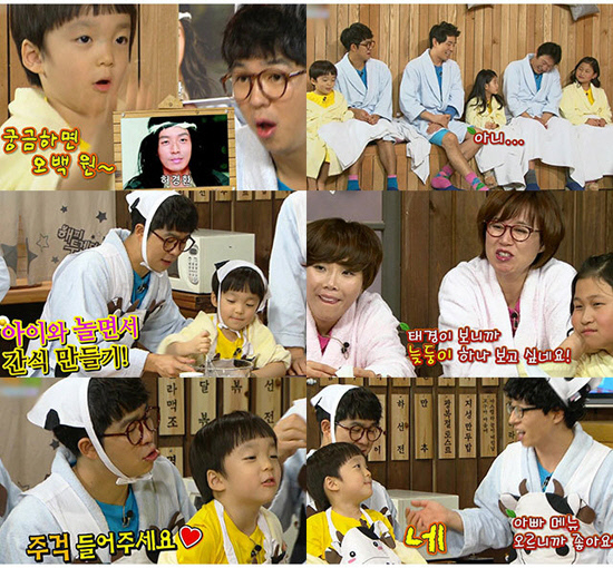 아이가 그 나이에 보여주는 면보다는 지나치게 똘똘하고 영특한 면을 본다는 것은, 어찌 보면 기특하기도 하지만 씁쓸한 마음도 지우지 못한다. 그런데 홍인규 태경 부자는 딱! 그 나이에 보여줄 수 있는 순수함을 보여줬다는 데서 흐뭇한 미소를 지을 수 있었다.