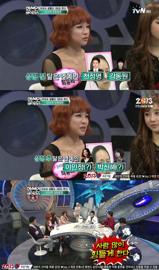이날 '흔녀거부' 화성인 최유리 씨는 "성형 수술 후 별명의 성별이 바뀌었다"며, "성형 전에는 천정명, 강동원 등 남자 스타들과 닮았다는 소리를 많이 듣는데, 요즘은 이민정, 박신헤 등 여자 배우들을 닮았다는 말을 자주 듣는다"고 고백해 눈길을 끌었다.