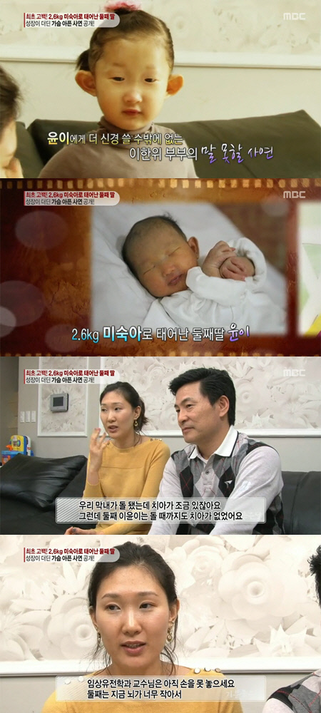 2.6kg 미숙아로 태어난 이한위 부부의 둘째 딸 윤이는 소아 기형증이라는 생소한 병을 갖고 태어난 것.