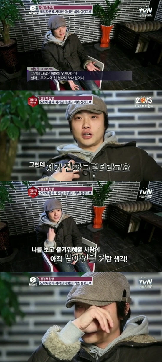 이성진은 인터뷰에서 "도박파문 후 술을 마셔도 오픈된 곳을 못가고 구석으로 갔다. 모자 쓰고 얼굴을 가리기 바빴다. 그래서 더 힘들었다"며 당시 심경을 고백했다.