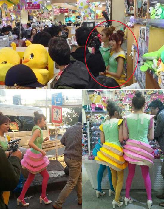 그룹 오렌지 캬라멜이 일본에서 독특한 무대의상을 입고 있는 모습이 포착됐다.