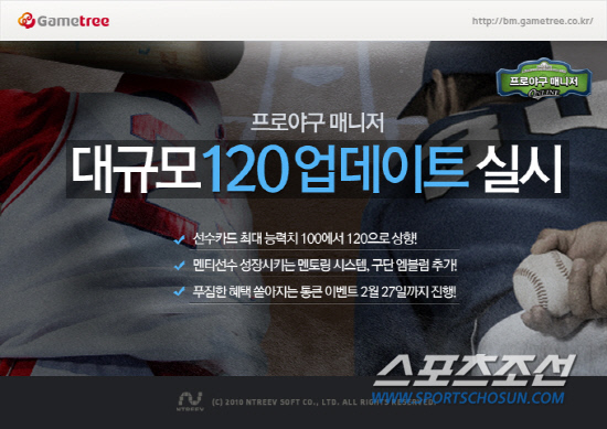 엔트리브소프트는 프로야구단 운영 시뮬레이션 게임 '프로야구 매니저'에서 2013년 첫 대규모 업데이트 '120'을 31일 실시한다.