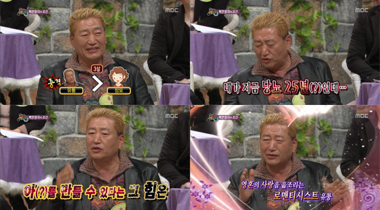 한편 이날 방송에서는 요식업계에 종사하는 연예인 특집으로 유퉁 외에도 배연정, 장항선, 김준희, 문희준, 사유리 등이 출연해 화려한 입담을 선보였다. <스포츠조선닷컴>