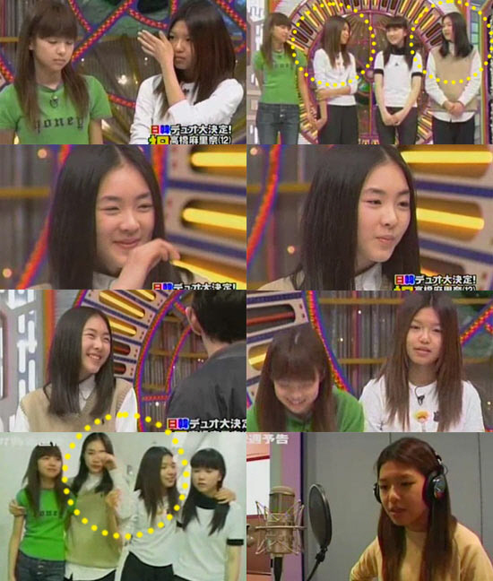 사진은 지난 2002년 한국과 일본에서 각 한 명씩 걸그룹 멤버를 뽑는 일본 오디션 프로에서 결승까지 오른 수영과 이연희의 모습.