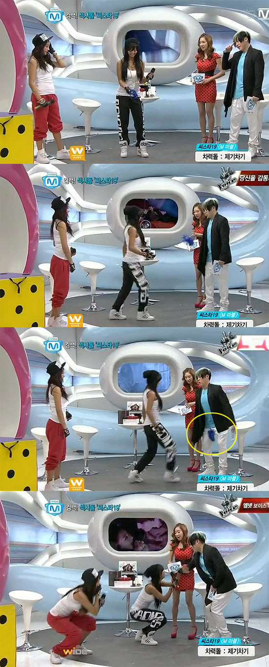 가수 효린이 선배가수 문희준의 낭심을 가격(?)해 무릎꿇고 사죄했다.