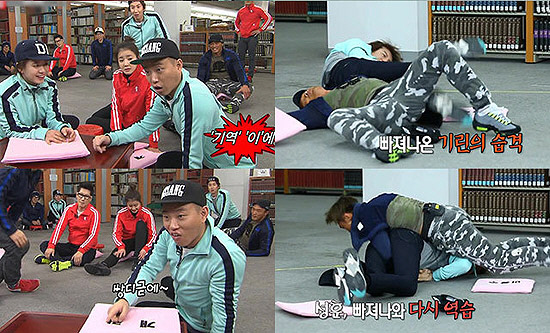 '왜 불안한 마음은 항상 이루어지는 것인지' 이광수는 이시영과의 씨름에서 넘어지며 중심부를 무릎으로 눌리는 불행을 보여주며 또 한 번 포복절도할 웃음을 보였다.