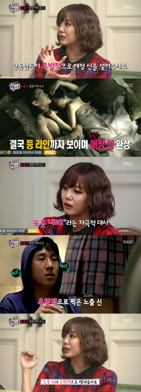 고은아는 4일 방송된 MBC '토크 클럽 배우들'에서 노출신 촬영에 대한 에피소드를 털어놨다.