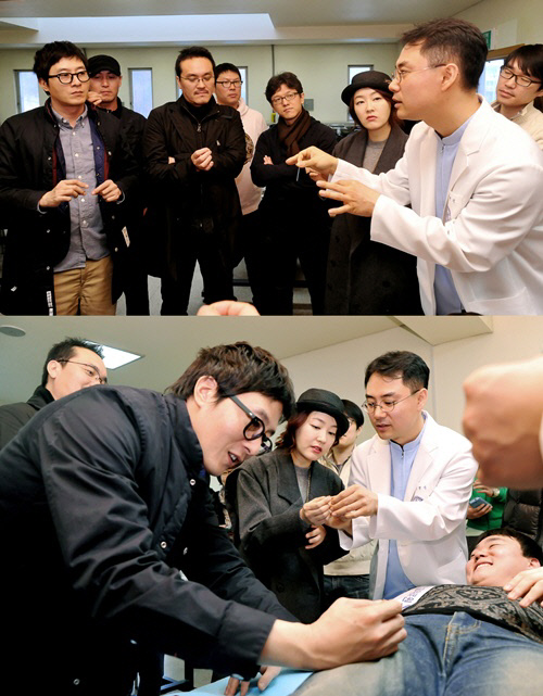 김주혁, 백윤식, 박진희, 남궁민, 최종환, 이재용, 정호빈 등 주요 출연진과 김근홍 PD, 권성창 PD는 지난 1일 오후 경기도 성남 분당의 한 한방병원에서 한방 기초이론 강의를 듣고 침술법을 배웠다. 강의를 통해 허준의 일대기를 간략히 되돌아본 이들은 직접 맥을 짚고 침을 잡는 자세를 배우기 위해 2인 1조로 실습에도 참여했다. 허준 역을 맡은 김주혁 외에도 유의태 역의 백윤식, 양예수 역의 최종환, 김민세 역의 이재용 등 베테랑 의원으로 등장할 출연진은 예리한 질문을 던지며 강의에 몰입했다는 후문이다.
