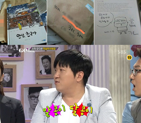 해당 사진은 한유라가 만화가 강풀로부터 동화책 선물을 받고 고마운 마음을 전하기 위해 인증 사진을 올린 것으로 우편물 앞면 받는 사람 난에는 지난해 12월에 태어난 정형돈-한유라의 쌍둥이 딸 정유주, 유하의 이름이 적혀있다. 또 책에는 강풀이 직접 그린 그림, 친필 사인과 함께 "유주야 유하야 반가워. 늘 행복하렴"이라는 메시지가 적혀있다.