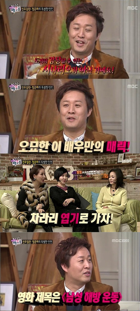 이에 선우일란은 "나 역시 정준하 팬이었다. 그가 지닌 코믹한 이미지를 활용해 보고 싶었다"며 해명했다. 이어 "무엇보다 힘을 잘 쓸 것 같았다. 몸에서 나오는 코믹함이 아주 돋보였다"며, "한참 남자배우를 물색 중이었는데 '이번엔 엽기로 가보자'는 생각이 들어 정준하를 추천했다"고 솔직히 털어놔 스튜디오를 폭소케 했다.