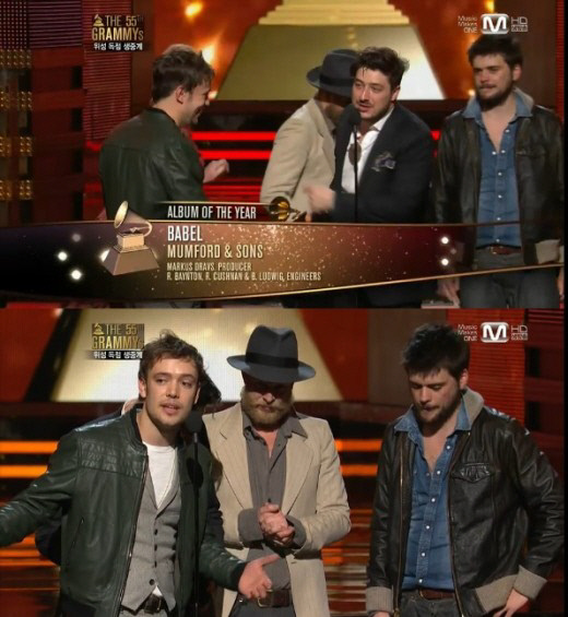 영국 출신 밴드 멈포즈 앤 선즈가 제55회 그래미 어워즈의 영광을 안았다.