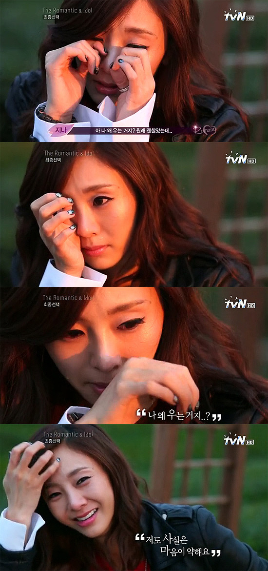 지나는 "너무 잔인한 프로그램이다. 솔직히 예상은 했는데 기분이 참 이상하다. 좋은 친구들을 만들어 가는 느낌이다"라며 "그런데 나 왜 우는 거지? 원래 괜찮았는데..."라고 말끝을 흐리며 눈시울을 붉혀 안타까움을 자아냈다.