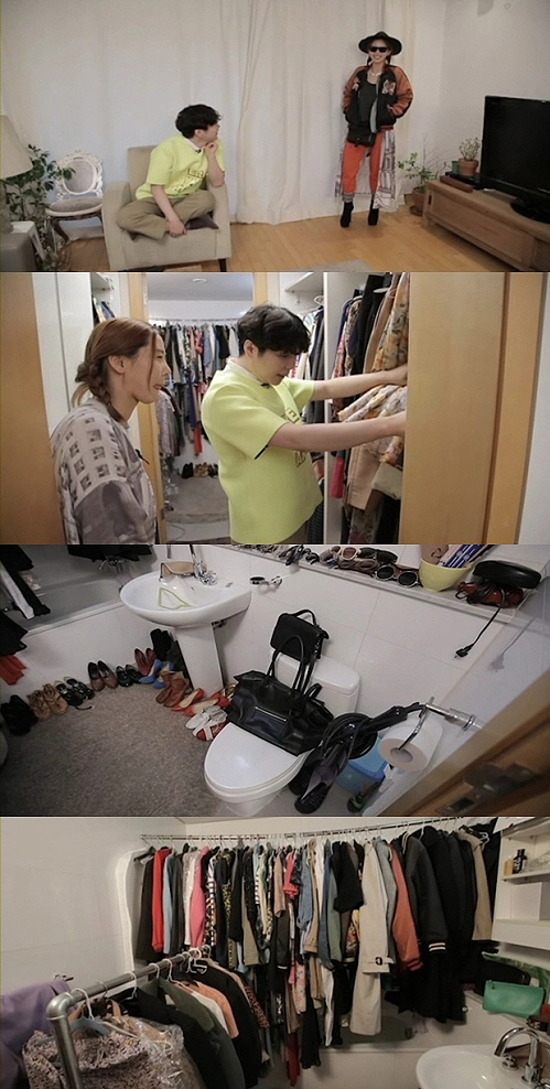 김나영은 특유의 엉뚱한 감각으로 공간이 넓은 화장실을 드레스룸으로 변경해 눈길을 끌었다. 세면대 위에는 각종 액세서리를 진열, 거울 아래 선반에는 선글라스가 나란히 놓여 있었다. 또한 욕조 위에는 옷걸이를 설치해 의류를 보관했다.