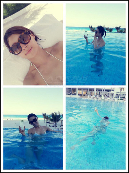 배우 한지혜가 아슬아슬한 비키니 몸매를 공개했다.