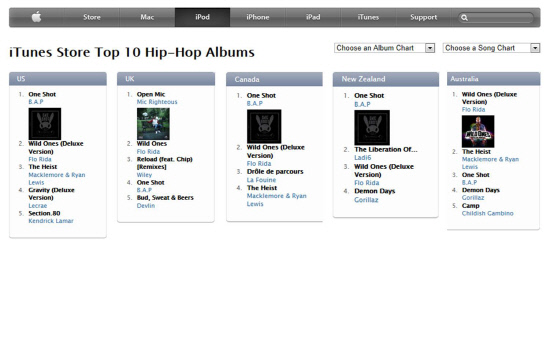 13일 B.A.P 미니 2집 '원샷'이 발매됐다. 이번 앨범은 발매 동시에 미국 캐나다 뉴질랜드 아이튠즈 힙합 차트 1위, 스웨덴 2위, 호주 노르웨이 핀란드 3위, 영국 일본 4위, 그리스 8위, 독일 9위를 휩쓰는 기염을 토했다. B.A.P는 이전에도 '파워'와 '노 멀씨'로 신인으로서는 이례적인 성적을 거두긴 했지만 이처럼 발매와 동시에 해외 아이튠즈 차트에서까지 1위를 차지한 것은 처음이다.