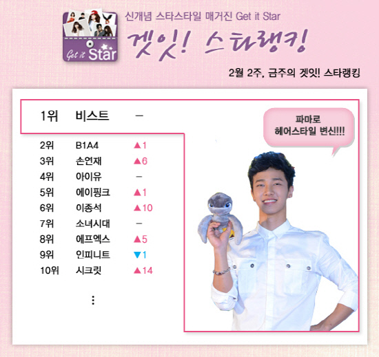 '대세' 비스트의 독주가 계속되고 있습니다. 2013년 2월 2주차 겟잇스타랭킹에서도 비스트가 정상을 지켜 무려 6주 연속 1위라는 대업을 달성했습니다. 과연 비스트의 독주는 끝이 없는 걸까요? 벌써 다음 주 겟잇스타랭킹이 기다려지네요.