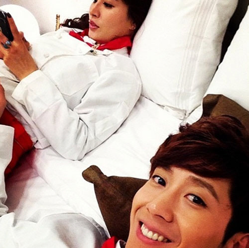 가수 브라이언이 황보와 한 침대에서 찍은 사진을 공개했다.