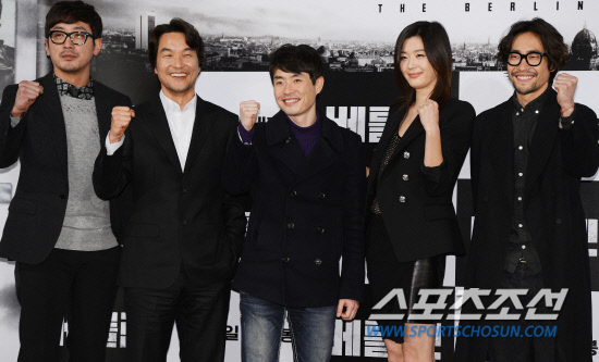 배우 하정우 한석규 전지현 류승범과 류승완 감독이 21일 서울 왕십리 CGV에서 열린 영화 '베를린' 언론시사회 및 기자간담회에 참석해 포토타임 때 포즈를 취하고 있다. '베를린'은 살아서 돌아갈 수 없는 도시 베를린을 배경으로 각자의 목적을 위해 서로 표적이 된 최고 비밀 요원들의 생존을 향한 사상 초유의 미션을 그린 작품. 독일 베를린과 라트비아 수도 리가에서 약 두 달 동안 현지 촬영이 진행됐다. 류승완 감독 작품으로 하정우, 한석규, 류승범, 전지현이 출연했다. 오는 31일 개봉한다.정재근 기자 cjg@sportschosun.com