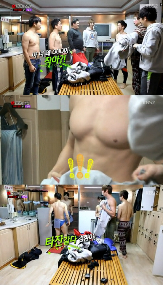 '인간의 조건'에 출연중인 개그맨들이 공중 목욕탕에서 단체 몸매 노출을 감행했다.