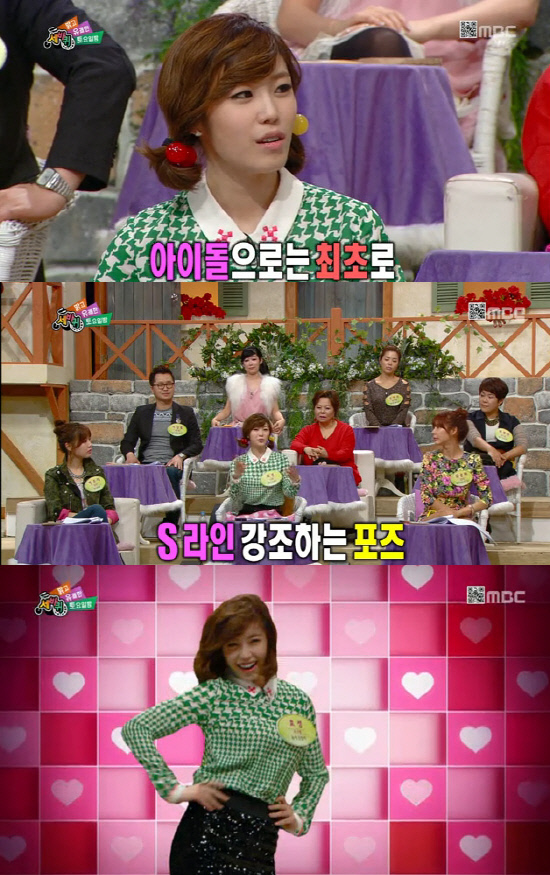 이어 전효성은 "과하게 S라인을 만들어줘야 사진에 더 S라인처럼 보인다"고 말한 뒤 속옷 모델 포즈를 취해 남자 출연진들의 눈길을 사로잡았다.