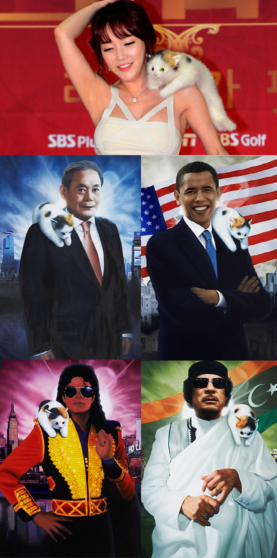 그녀가 출품하는 작품에는 자신의 트레이드 마크인 고양이 인형 '코코샤넬'을 세계 유명인들의 인물화 어깨에 그려 넣었다. 이에 낸시랭은 "나의 어깨 위에서 9년째 동고동락 중인 고양이 인형 '코코샤넬'을 세계적인 인물들의 어깨에 배치함으로 다소 심각하고 진중한 인사들을 유쾌하게 풍자하고 싶었다"고 밝혔다.