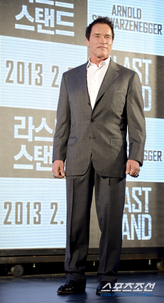 20일 서울 여의도 콘래드 호텔에서 영화 '라스트 스탠드'의 배우 아놀드 슈왈제네거 내한 기자회견이 열렸다. 아놀드 슈왈제네거가 포토타임에서 포즈를 취하고 있다. '라스트 스탠드'는 김지운 감독의 할리우드 첫 진출작이자 캘리포니아 주지사 임기를 마치고 10년 만에 돌아온 아놀드 슈왈제네거의 복귀작으로 기대를 모으고 있다. 김보라 기자 boradori@sportschosun.com