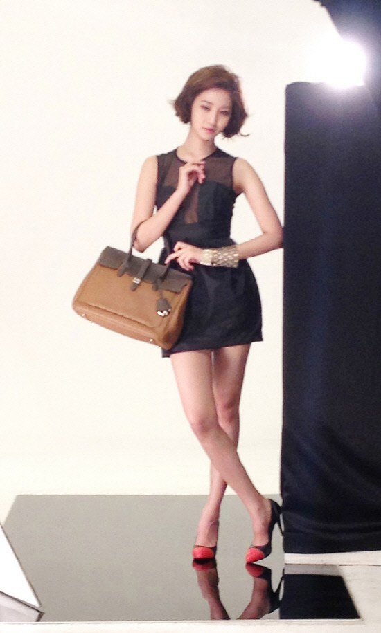 또 아찔한 높이의 하이힐과 팔에는 블링블링한 팔찌를 착용해 패셔니스타 다운 스타일을 선보였다. 이어 모델 출신다운 고난도의 명품 포즈를 완벽하게 표현해 시선을 사로잡았다.