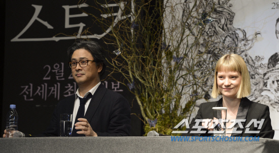 21일 서울 한남동 그랜드 하얏트 호텔에서 영화 '스토커' 기자간담회가 열렸다. 미아 바시코브스카와 박찬욱 감독이 기자간담회를 갖고 있다. 박찬욱 감독 첫 번째 할리우드 프로젝트로 미아 바시코브스카를 비롯해 니콜 키드먼, 매튜 구드 등 할리우드 스타들이 출연한 영화 '스토커'는 18세 생일 아버지를 잃은 소녀 앞에 존재조차 몰랐던 삼촌이 찾아오고 소녀 주변 사람들이 사라지면서 벌어지는 이야기로 오는 28일 개봉한다. 김보라 기자 boradori@sportschosun.com