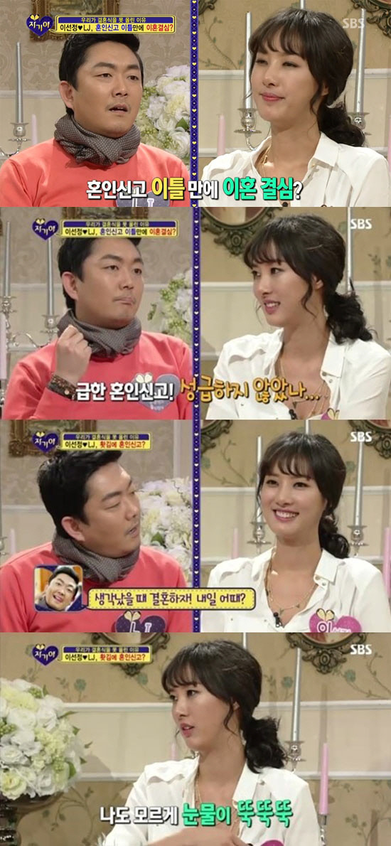 배우 이선정(37)이 방송인 LJ(37)와 혼인신고를 하고 이틀 간 폭풍 눈물을 흘렸다고 고백했다.