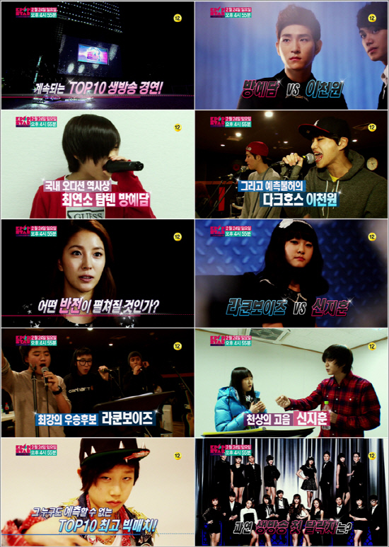 라쿤보이즈와 신지훈, 방예담과 이천원 등 강력한 우승 후보들이 '일대일 대결'을 펼칠 예정이라 벌써부터 팽팽한 긴장이 감돌고 있다. 최예근, 걸그룹 유유, 앤드류 최에 이어 합격의 기쁨을 누릴 승자는 누가 될지 관심이 쏠린다.