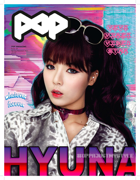 현아는 'POP' 28호에서 자신만의 독보적인 섹시함과 귀여움의 조화를 이룬 톡톡 튀는 이미지를 선보였으며, 'POP' 매거진만의 예술적이고 독특한 감성으로 재해석되어 호평을 받고 있다.