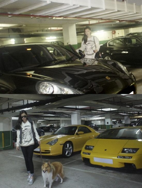 사진을 본 네티즌들은 "모토쇼장이 따로 없네", "슈퍼카에 밀리지 않는 스키니진 각선미", "운동화 신고도 저런 비율이 나오다니", "애완견도 럭셔리해 보여" 등의 반응을 보였다.
