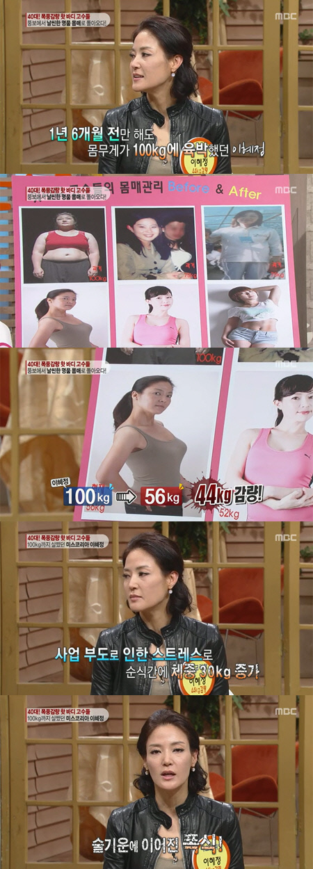 이혜정은 27일 방송된 MBC '기분 좋은 날'에서 출연해 "불과 1년 반 전에 몸무게가 100kg에 육박했다"고 고백했다.