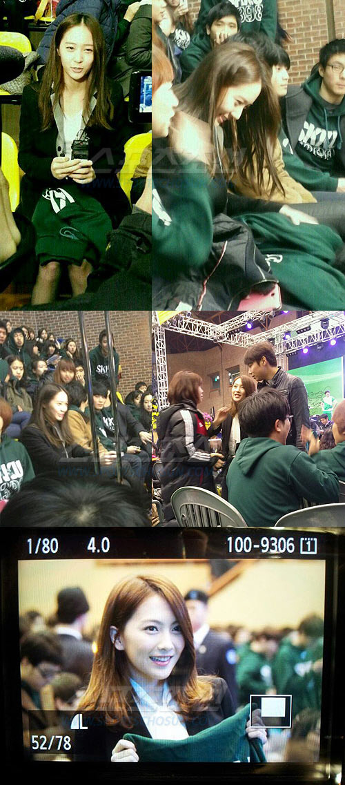 크리스탈의 무릎에는 성균관대학교 마크가 그려져 있는 녹색 후드티가 놓여 있어 대학생이 된 사실을 새삼 실감케 했다. 강지영 또한 하얀색 블라우스 위에 검은색 재킷으로 학생다운 패션을 선보였다. 이어 잡티 없는 피부를 뽐내며 우월한 외모로 네티즌들을 감탄케 했다. 이어 성균관대학교 녹색 후드티를 들고 인증샷을 찍으며 풋풋한 대학생의 포스를 풍겼다.
