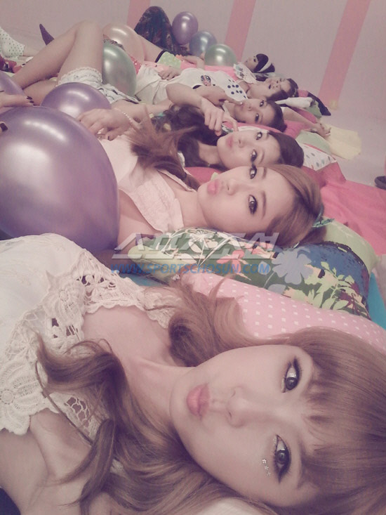 걸그룹 나인뮤지스 멤버들이 일렬로 드러누운 채 섹시미를 발산했다.