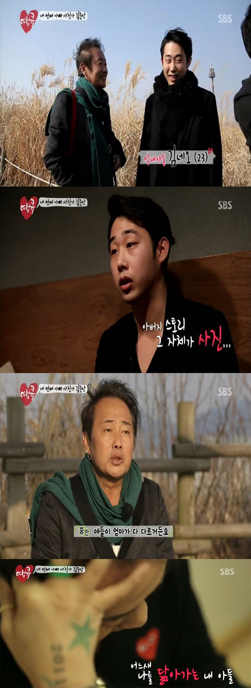 김중만은 "애들 엄마들이 다 다르다. 그럼에도 불구하고 현재 잘 지내고 있는 게 참 고맙다"라며 "내가 오른손에 별 문신이 있는데 첫째 아들이 똑같이 했다. 이어 막내아들 네오도 '나도 할래'라고 따라해 같은 위치에 똑같은 사이즈의 문신이 있다"고 밝히며 애정을 드러냈다.